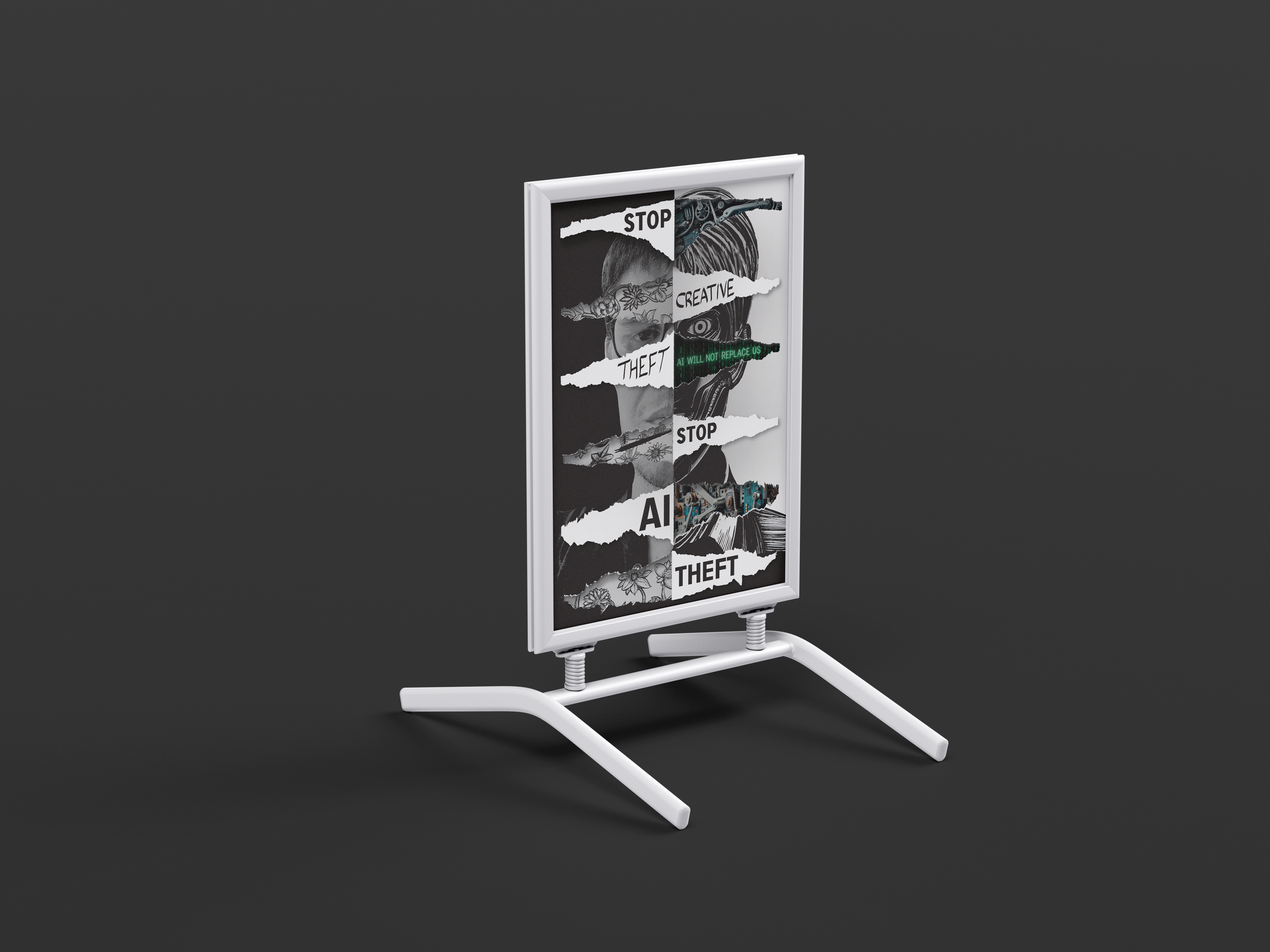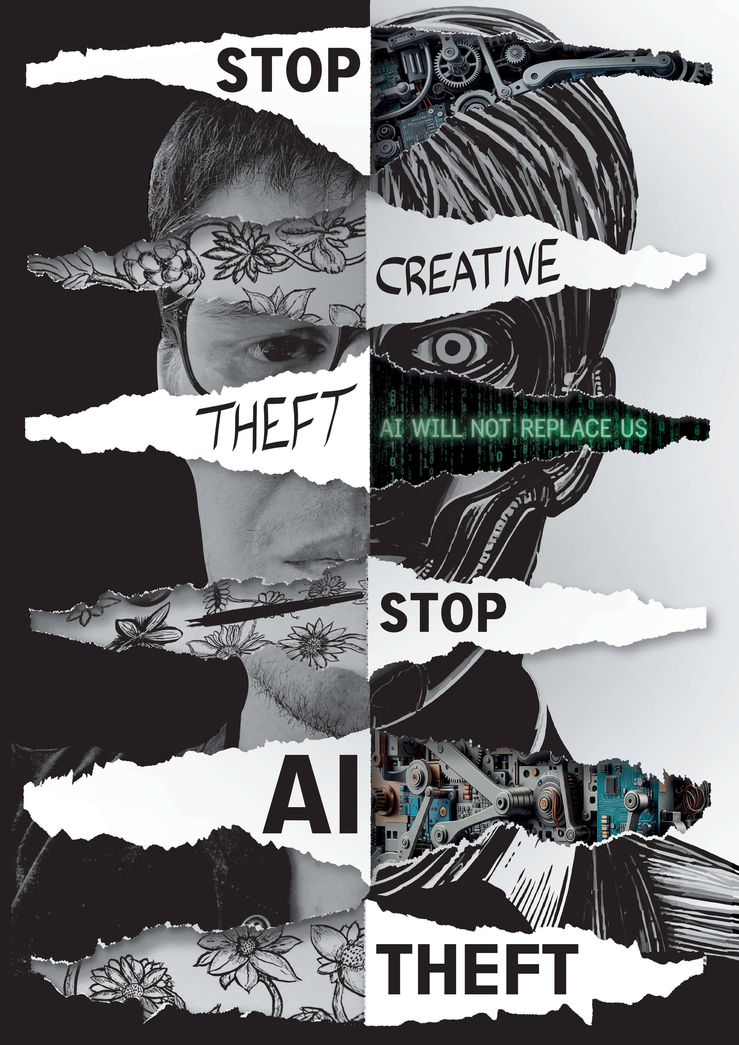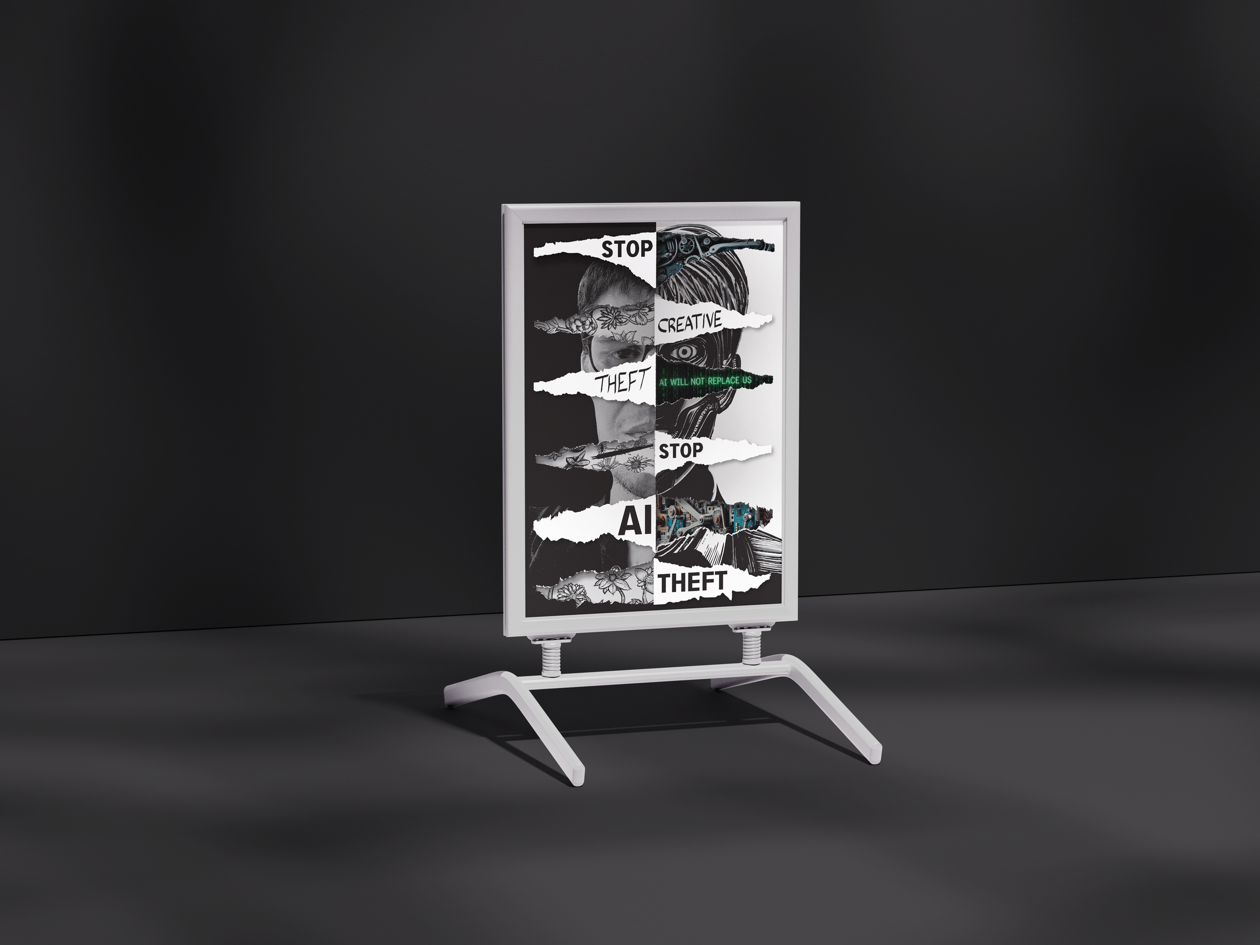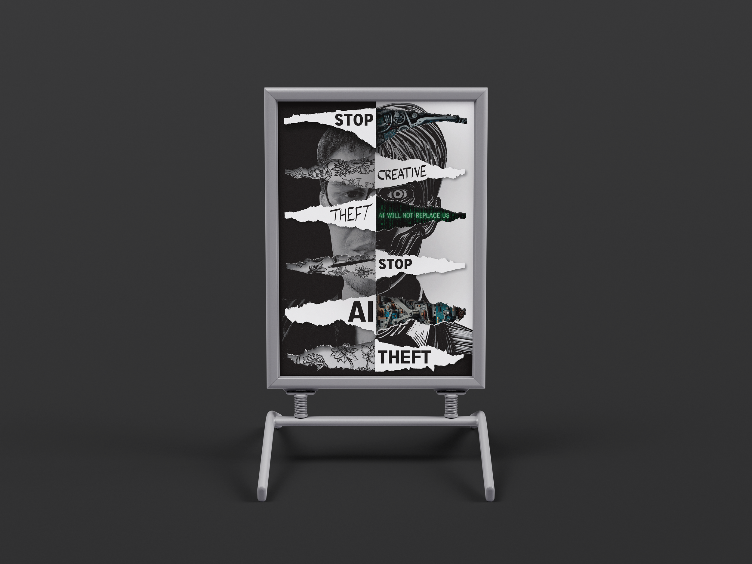 As part of my product, I decided to create a more topical piece focusing on the increase in AI within the creative industry and issues surrounding creative theft and its impact on artists.