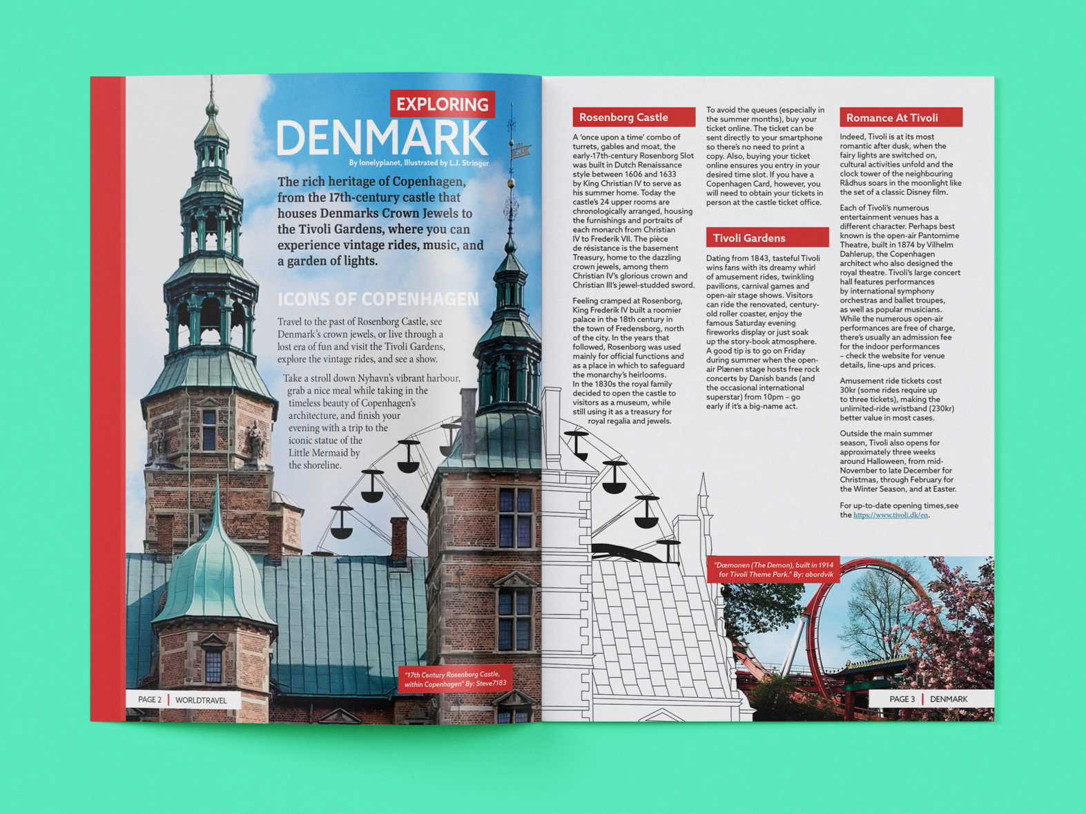 Due to the free-range regarding imagery/information used, I decided to focus more on the romantic/traditional side of Danish tourism, travelling along the canal, and visiting amusement parks.